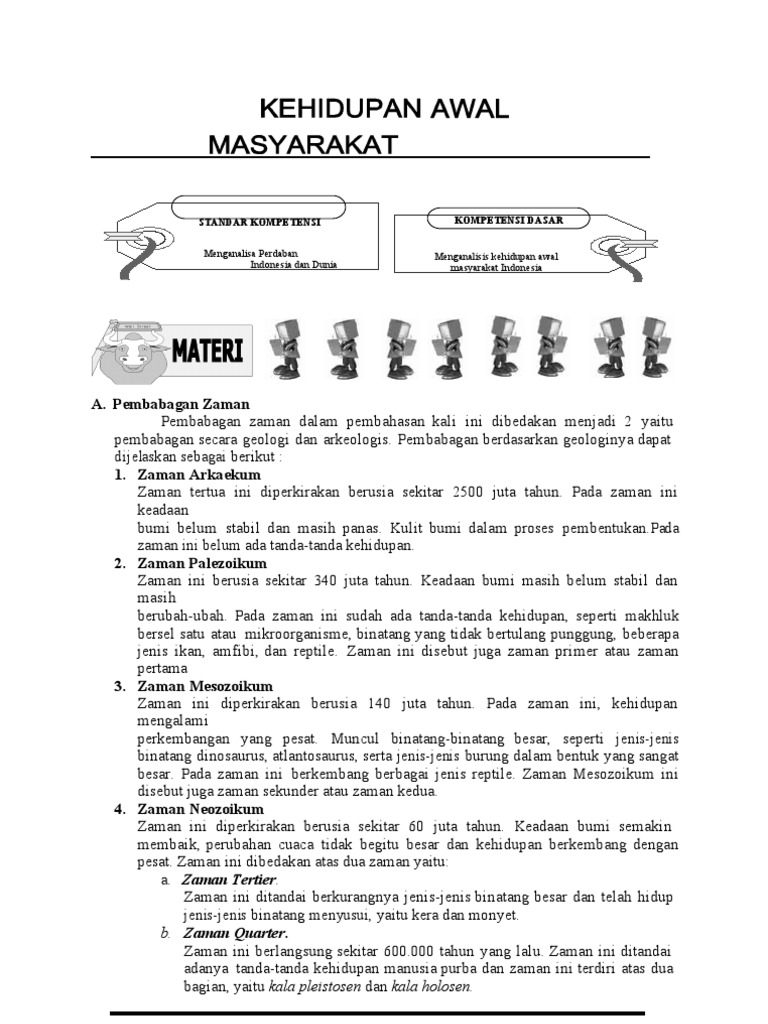 1.mendiskripsikan berbagai fosil manusia purba di indonesia. Kehidupan awal masyarakat indonesia 1. Pada zaman ini belum terdapat kehidupan karena bumi masih sangat panas. Kehidupan masyarakat pada masa berburu dan mengumpulkan makanan masih sangat sederhana. Menganalisa perdaban indonesia menganalisis kehidupan awal. 2.1 kompetensi menganalisis dasar kehidupan awal masyarakat indonesia indikator 2.1 menganalisis pencapaian kehidupan awal masyarakat indonesia mendeskripsikan indikator pencapaian berbagai fosil manusia purba di i ndonesia. Siswa mampu menganalisis teori teori tentang proses muncul dan berkembangnya kehidupan awal manusia dan masyarakat di kepulauan indonesia. Mengidentifikasi teori perkembangan bumi secara geologis mendeskripsikan tentang keberadaan awal masyarakat indonesia (teori migrasi) mengidentifikasi pendapat ahli tentang keberadaan awal atau. Keterampilan menulis awal bahasa indonesia. Masa ini desebut sebagai masa food gathering (mencari dan mengumpulkan makanan). Kehidupan awal masyarakat indonesia komp kompet eten ensi si da dasa sarr : Kehidupan awal masyarakat indonesia teori kehidupan di bumi perkembangan manusia purba kehidupan sosial, ekonomi, dan budaya. Ilmu arkeologi (berdasarkan peninggalan budaya).